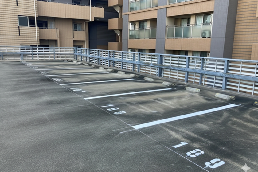 豊中市 自走式駐車場ライン引き更新工事
