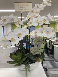 また、創業80周年にあたり、関係各社のみなさまより、お祝いのお花や記念品をお贈りいただきました。