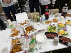 大掃除の後は毎年恒例おいしいお寿司と豪華な食事と共に納会を行いました。